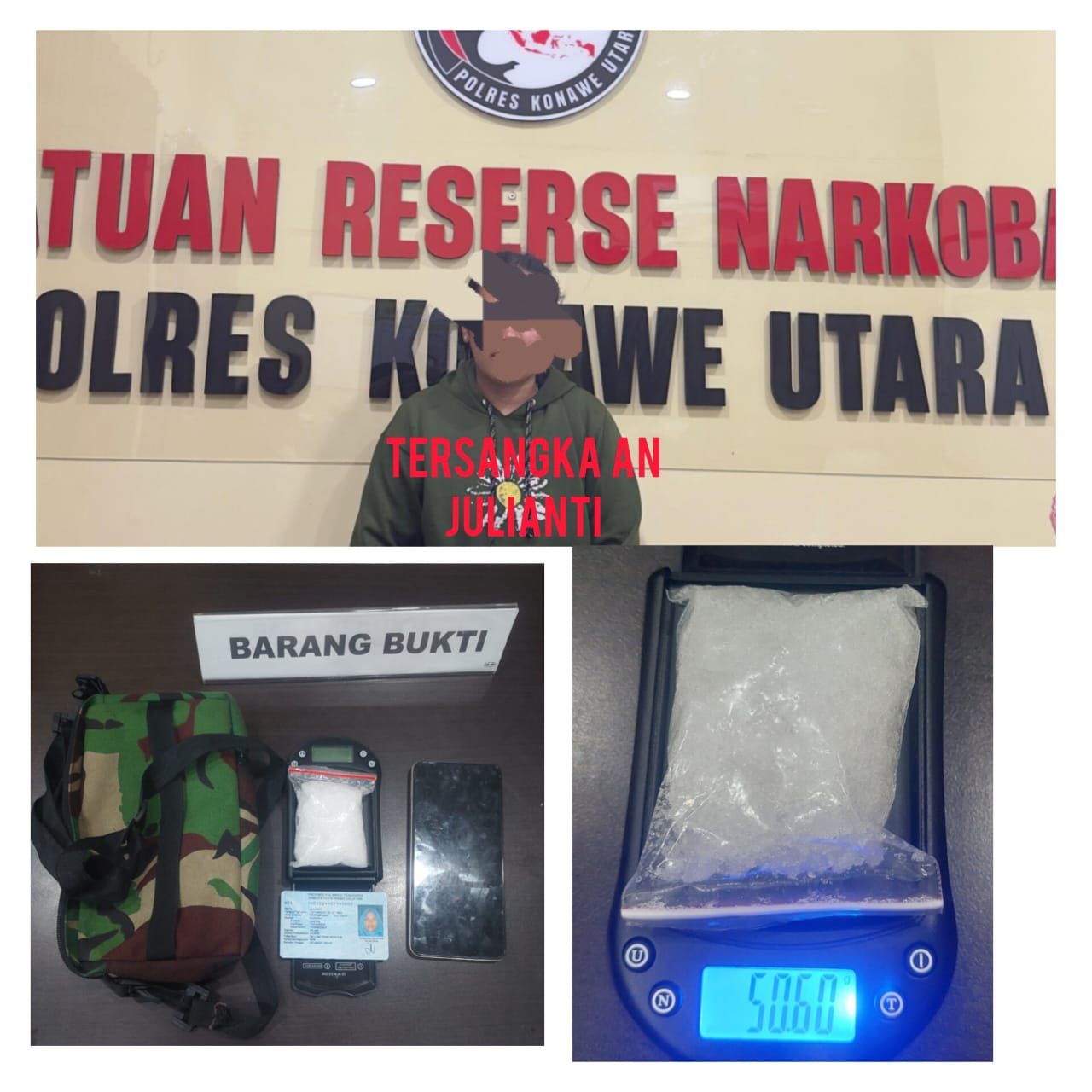 Kepala Kepolisian Resor Konawe utara AKBP Rico Fernanda, melalui Kasat Reserse Narkoba Polres Konawe Utara, AKP Arman menjelaskan, penangkapan ini berawal dari laporan masyarakat terkait peredaran narkoba di wilayah Kecamatan Langgikima.