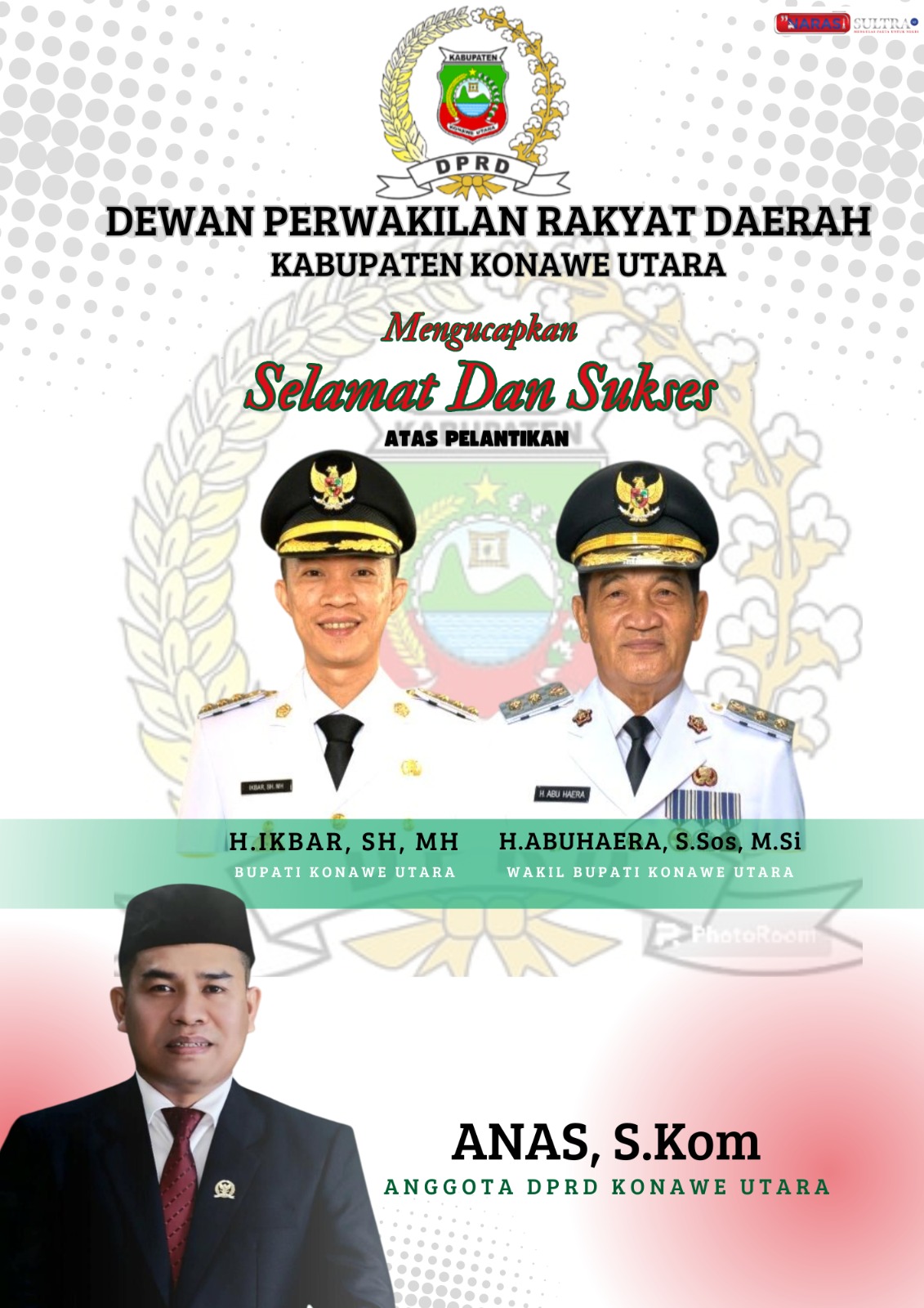 NARASISULTRA.ID, KONUT- ANGGOTA DPRD KONAWE UTARA FRAKSI PARTAI INDONESIA DEMOKRASI PERJUANGAN, (PDIP), ANAS, S.KOM. UCAPKAN SELAMAT ATAS DILANTIKNYA H.IKBAR,SH,MH. DAN H.ABUHAERA, S.SOS, M.SI SEBAGAI BUPATI DAN WAKIL BUPATI KONAWE UTARA PERIODE 2025-2030.