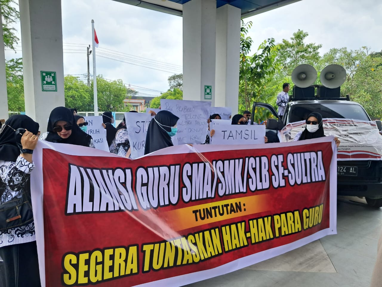 Aksi demonstrasi ini mencerminkan keresahan para pendidik yang merasa hak mereka terabaikan. Hingga berita ini diturunkan, pihak Dinas Pendidikan Sultra belum memberikan pernyataan resmi terkait tuntutan para guru.(Dewa)